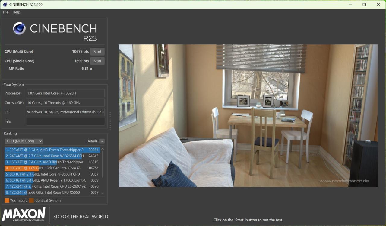 Cinebench主要通过渲染场景的方式,来测试CPU的极限性能和稳定性。