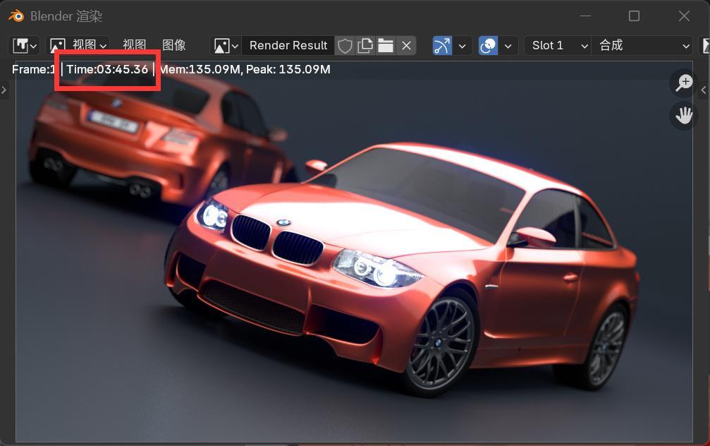 在Blender软件里,用官网提供的Car Demo的CPU渲染。
