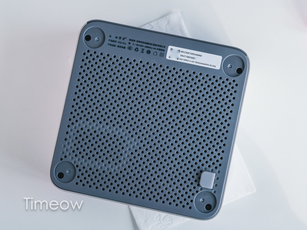 与其他家迷你主机设计不同的是,零刻EQi13 Pro在两侧和顶部并没有做开孔,整体浑然一体,视觉效果更优雅。