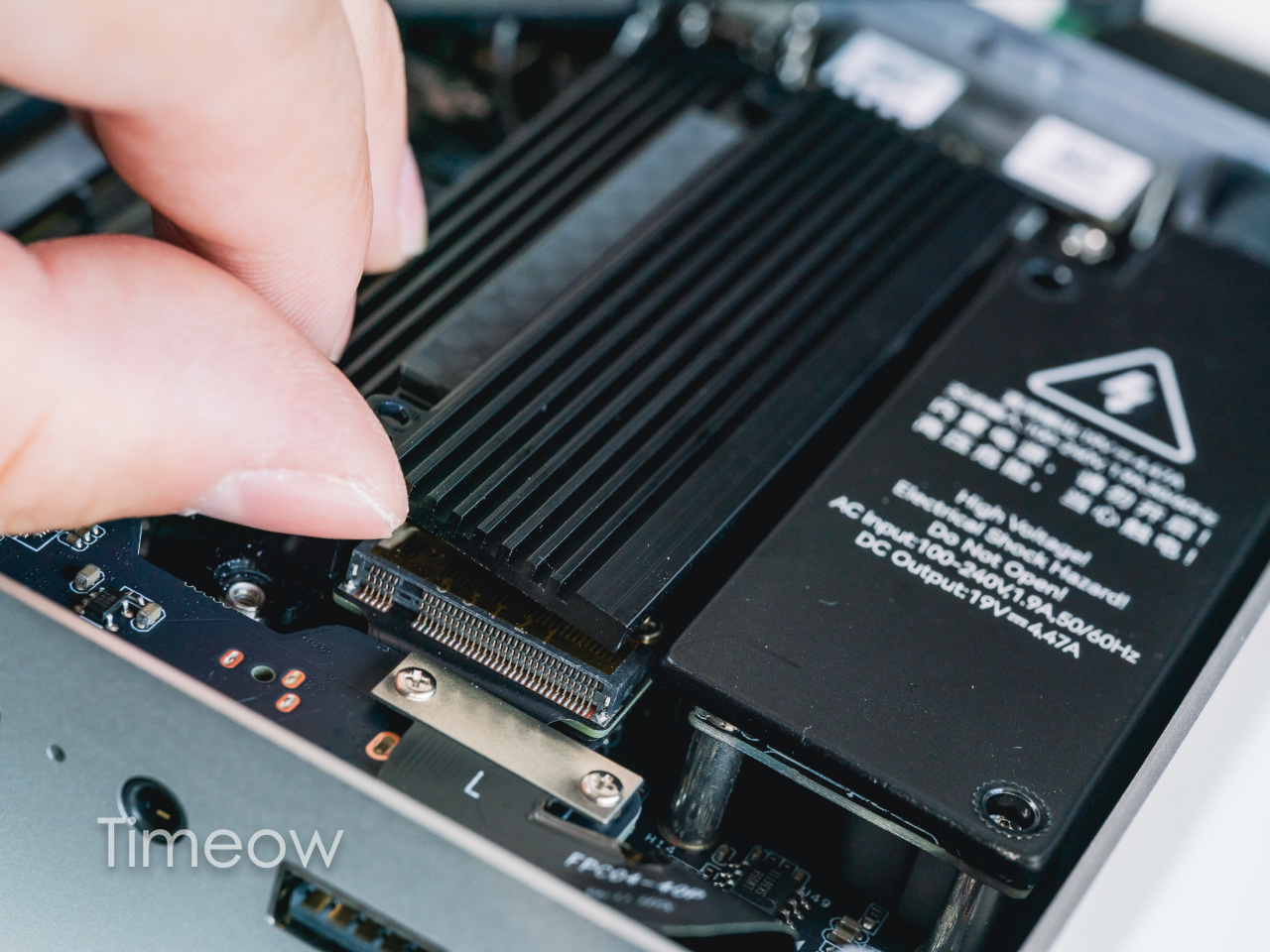 SSD表面有金属散热器,卸下螺丝可见一个空闲的M.2插槽,可以额外增加一根NVME固态硬盘,轻松扩容。