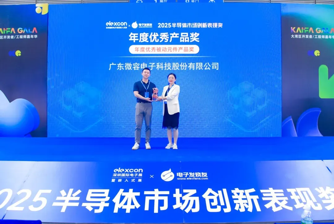 值得关注的是,本届展会中,微容科技凭借在电子元器件MLCC行业技术研发、自主创新方面的突出表现,荣获由行业媒体电子发烧友颁发“年度优秀被动元件产品奖”奖项。